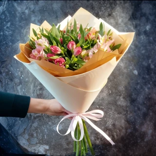 Этот букет из альстромерий наполнен нежностью и теплом. Их изящные цветы создают атмосферу умиротворения и спокойствия. Упакованный в нежную обертку, этот букет станет прекрасным подарком для тех, кого вы хотите порадовать и подарить чувство уюта.