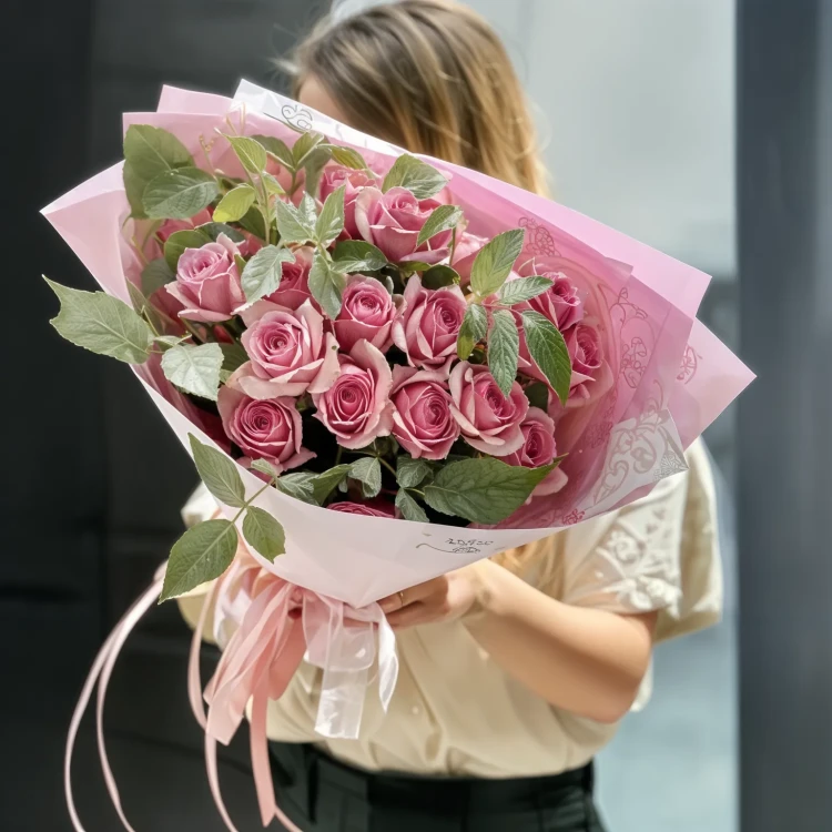 Букет, который будит нежность и романтику в сердцах. Он состоит из нежных кустовых роз, обрамленных зеленью, в элегантной упаковке. Розы, свежие и изящные, наполняют воздух благоуханием и нежностью, олицетворяя неземную красоту и чувственность. В этом букете каждый цветок – слово безмолвного признания, каждый лепесток – неповторимый штрих в нежной картине счастья. Пинки лав – это букет, способный повергнуть в восторг и растопить сердца своей изящностью и привлекательностью.