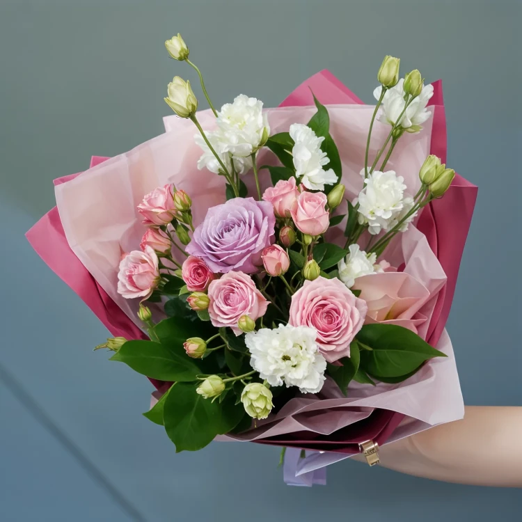 Этот букет "Ростки любви" - образец изысканности и нежности. В нем сочетаются красота кустовых и одноголовых роз, которые символизируют любовь и прекрасные чувства. Лизиантусы добавляют нотку романтики и загадочности. Это волшебное сочетание цветов дополняется свежей зеленью, создавая гармоничный и естественный образ. Букет идеально подходит в качестве подарка для любого особого мероприятия или для того, чтобы порадовать близкого человека в повседневной жизни.