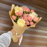 "Вайт энд роуз" - восхитительный букет цветов из кустовых и одноголовых роз в нежных тонах пронизан нежностью и романтикой. Каждый цветок в этой композиции является символом любви и нежности, создавая атмосферу тепла и умиротворения. Крафтовая упаковка придает букету особую элегантность и неповторимый шарм. Это идеальный подарок для тех, кто хочет выразить свои глубокие чувства и создать незабываемый момент для своих близких или любимых людей.